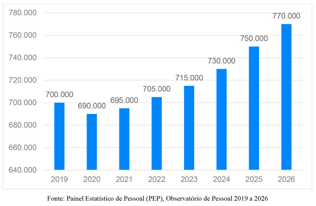 Gráfico 2: Evolução e Composição dos Quantitativos de Pessoal na APF entre 2019 e 2026.