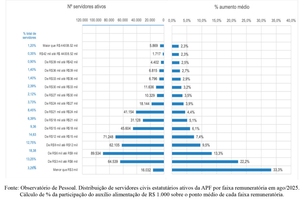 Gráfico 5: Impacto Distributivo do Auxílio Alimentação de R$ 1.000,00 sobre Servidores Civis Ativos da APF por Faixa de Renda a valores reais de 2025.